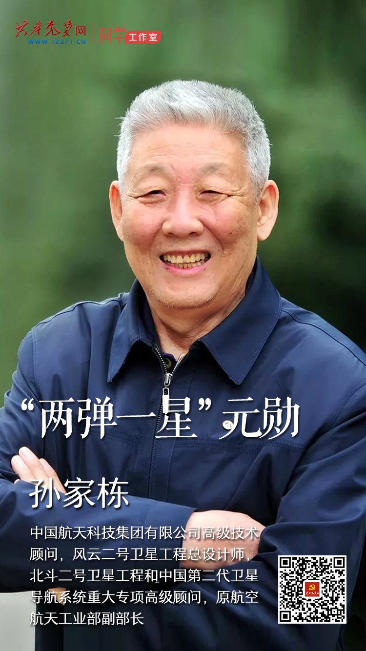 孙家栋(1929——),辽宁瓦房店人。1956年8月加入中国共产党。中国航天科技集团有限公司高级技术顾问,原航空航天工业部副部长,中国科学院院士。他是我国人造卫星技术和深空探测技术的开拓者之一,从事航天工作60年来,主持研制了45颗卫星。担任我国北斗导航系统第一代、第二代工程总设计师,月球探测一期工程的总设计师,树立了我国航天史上新的里程碑。荣获“全国优秀共产党员”称号和“两弹一星”功勋奖章、国家最高科学技术奖、国家科学技术进步奖特等奖。