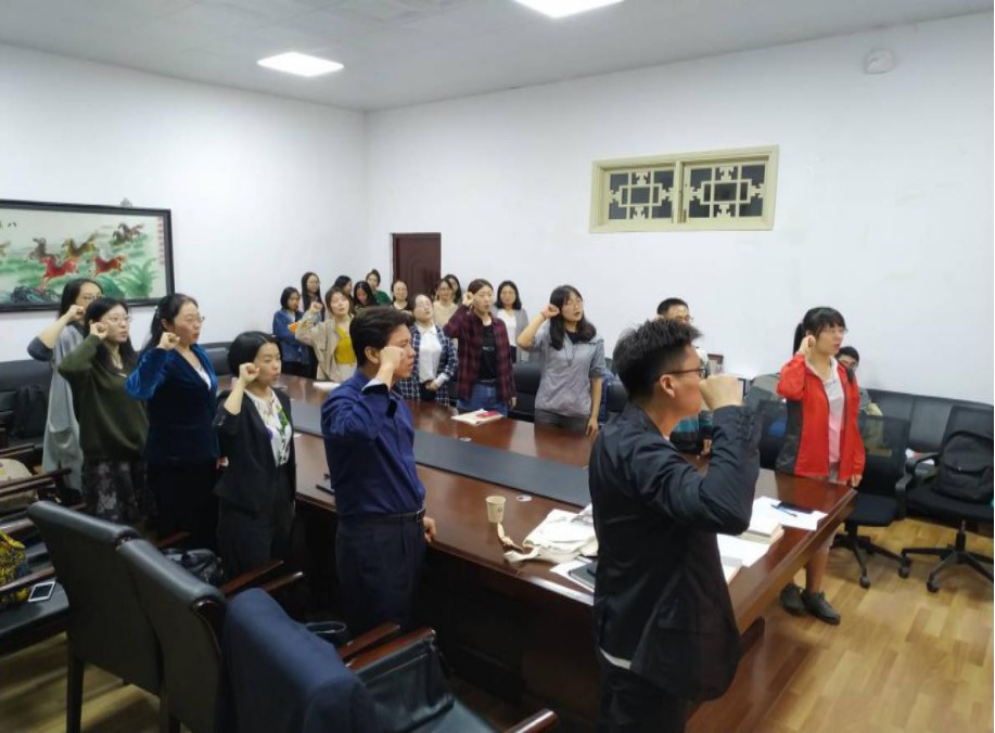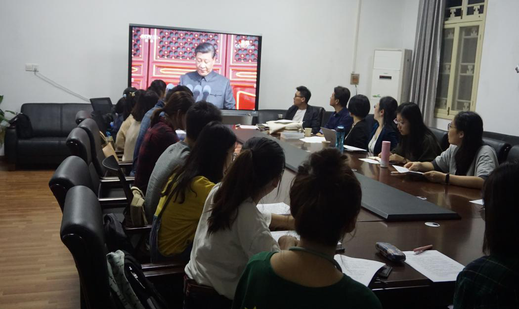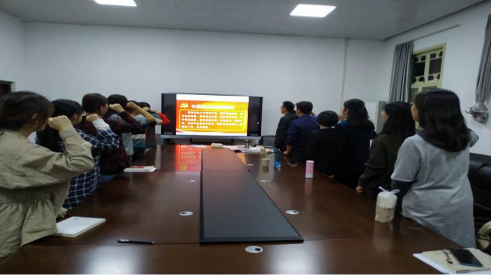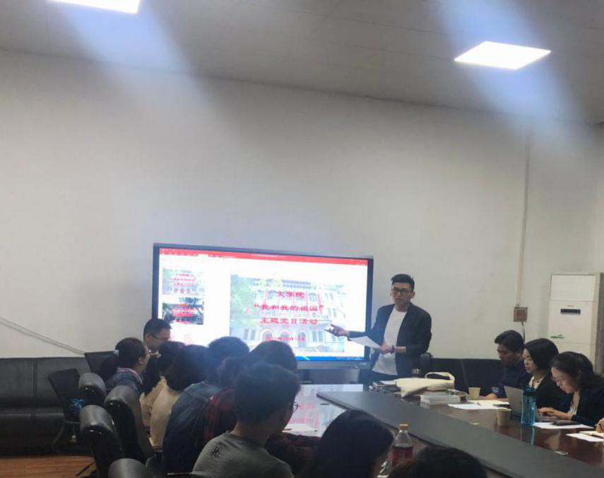 为庆祝新中国成立七十周年,深入学习领会党中央“不忘初心,牢记使命”主题教育精神,加强爱国主义教育,弘扬爱国主义精神,提升党员对初心与使命的认识和践行,文艺学与马列文论会联合党支部教师党员和文艺学研究生党支支部,于2019年10月10日晚在文学院三楼会议室联合举办“我和我的祖国”主题党日活动。本次活动由文艺学与马列文论会联合党支部宣传委员王海龙和文艺学研究生党支部书记孙铭主持,教师党员徐敏、黄念然、李炜,学生支部正式党员和入党积极分子均积极参加了本次活动。