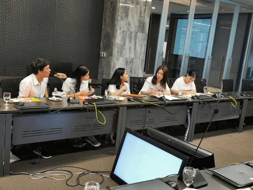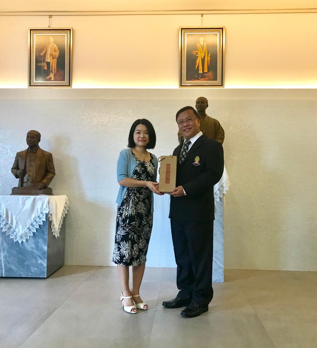 上午九时许,调研交流会在朱拉隆功大学教育学院会议室如期举行,泰方教育学院院长、副教授Siridej Sujiva博士,副教授Pornsook Tantrarungroj博士,邵力敏老师,罗思娜老师和三名泰国学生代表参会。