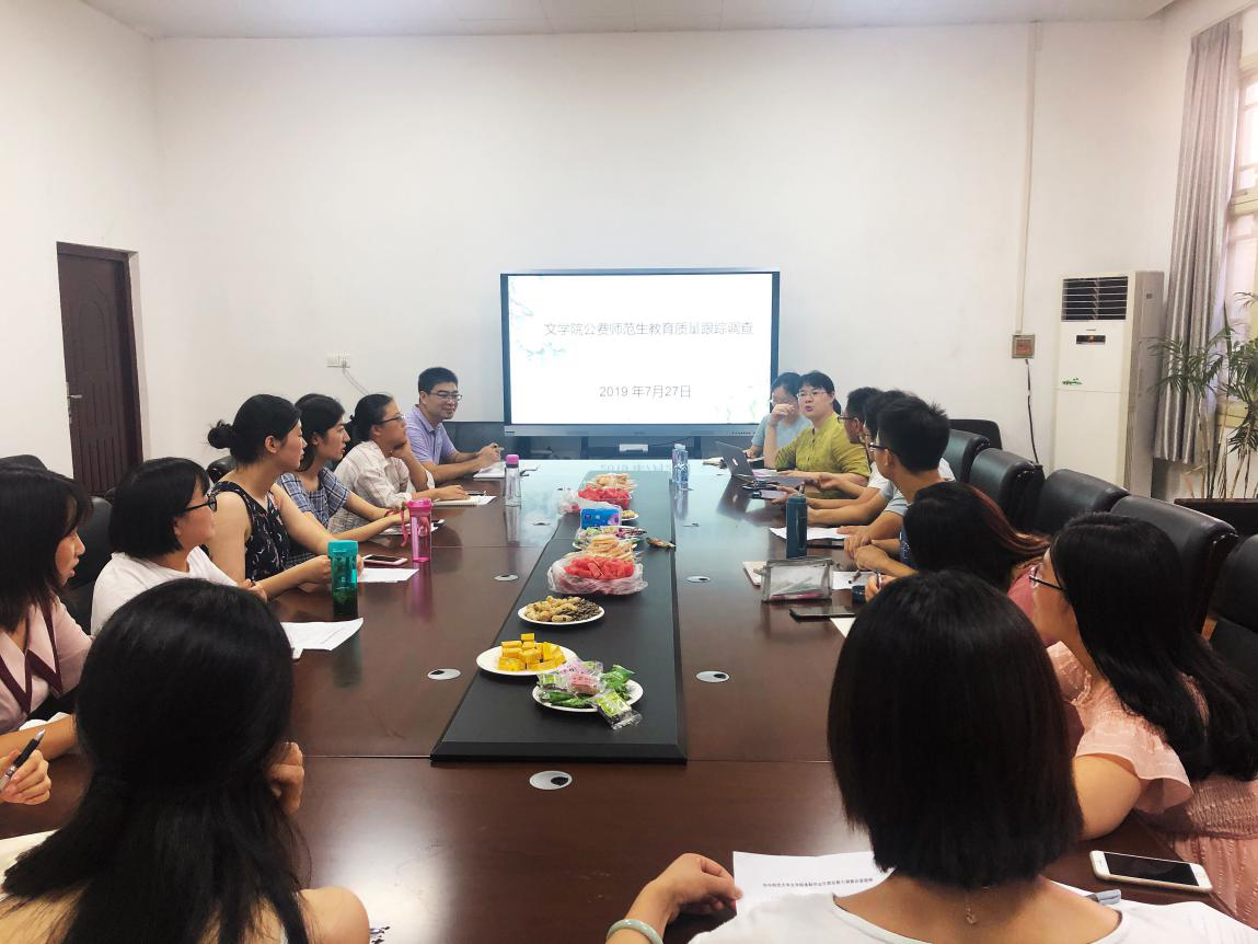 (通讯员:孙铭)7月26日、27日晚,学院组织2019年暑假回母校攻读教育硕士的32名研究生,在三楼会议室召开师范专业本科生培养质量和就业能力提升座谈会。分党委副书记徐福刚,陈秀玲、罗俊容等三位老师参加了本次座谈,会议由陈秀玲老师主持。