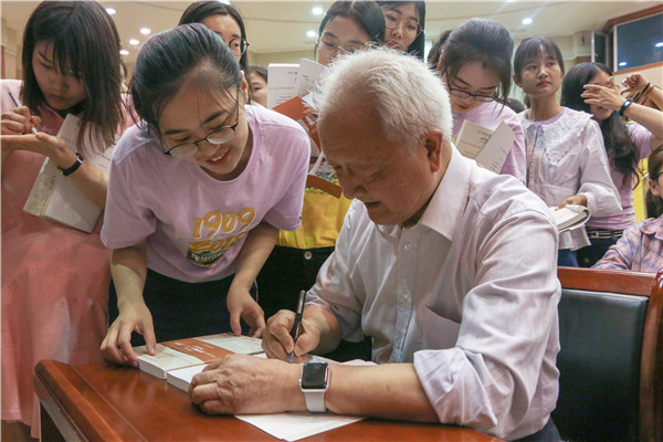 本次活动中,王先霈老师为毕业生们讲授了最后一课。他从三个角度出发展开分享,表达了对毕业生真诚的祝福以及对未来新生活的关切和祝愿。他首先提到:“毕业生们即将步入一个新的环境,此时了解、熟悉新环境,融入新的集体,被新的群体接纳,尽快建立起良好的人际关系是大家将面临的一个极为重要的现实问题。”紧接着他举了《红楼梦》中初进贾府的林黛玉“步步留心,时时在意”一例,对适应新环境的重要性加以生动的阐述。随后他强调了做人应当自尊、自爱、自律。要按照自己理性的价值观有意识有目的地生活,做立志要做的事,做自己想做的人,做有原则、对自我负责的人。他认为:“大家要有亲和力,但并不是处处迁就别人,在原则问题上要始终保持一种方正感,这才是真正的自尊。”第三个建议是在步入社会后,同学们要认清工作岗位的需要,认清自己的长处和短板,随时准备学习新的知识和技能,积极应对单位和社会对人才需求的变化。要相信无论从事什么工作都可能做出大的业绩和成果,但前提是大家要踏踏实实去做。最后,他表示: “同学们赶上的时代比我们当时好很多,有许多机遇和挑战,我想在之后的这段时间内会不断传来同学们的捷报,我也期待大家的好消息。”